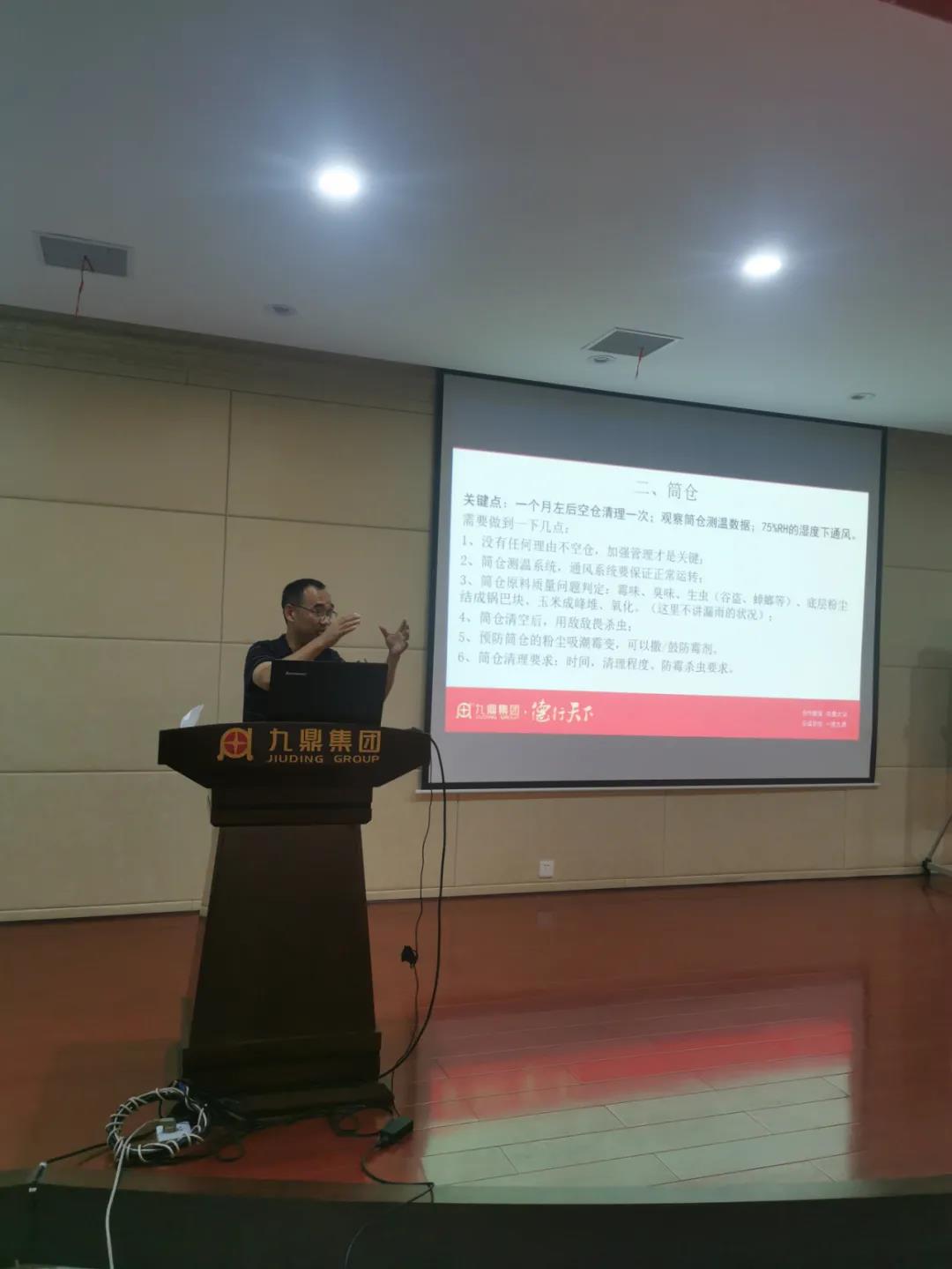 湖南九鼎農牧基地廠長謝爭光在會場進行新工藝/新技術/新設備分享與答疑