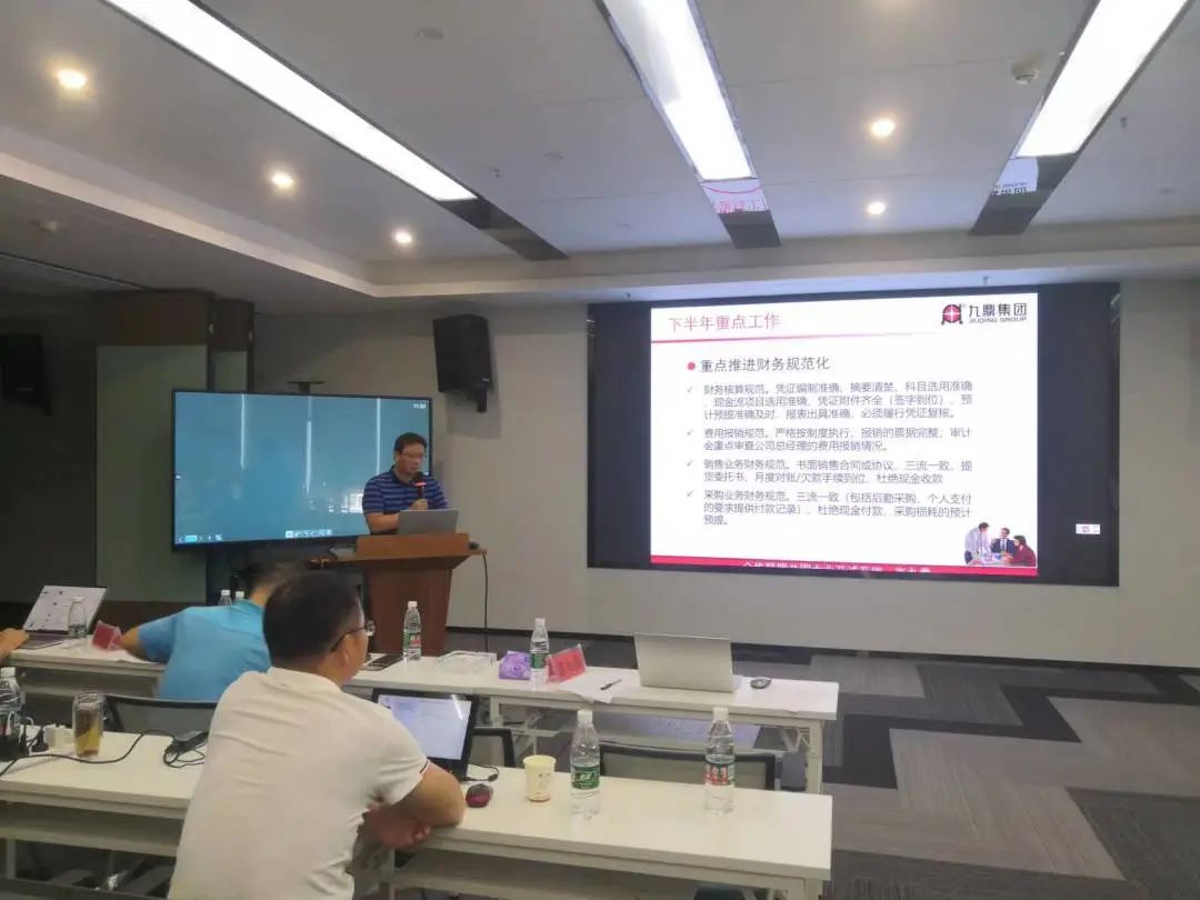 集團董事長楊林指出:九鼎集團穩健發展,運營資金充裕,負債率低,集團整體發展態勢良好,未來可期;財務經理應該做好企業的內當家,做好業務支持與風險防控工作。集團董事長1個億激勵方案已在集團半年度經營會議上做了宣貫,財務線要積極參與其中,要求財務管理中心結合集團的整體激勵方案制定財務線的激勵方案。同時要配合集團做好激勵政策的宣傳工作。