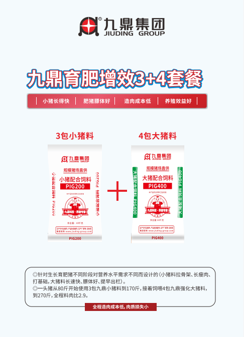 九鼎集團專注豬料生產研發29年,致力于為廣大養殖企業提供優質高效的飼料產品,在全國擁有分子公司近30家,年銷售飼料200萬噸,此次展會推出了全新的套餐系列: