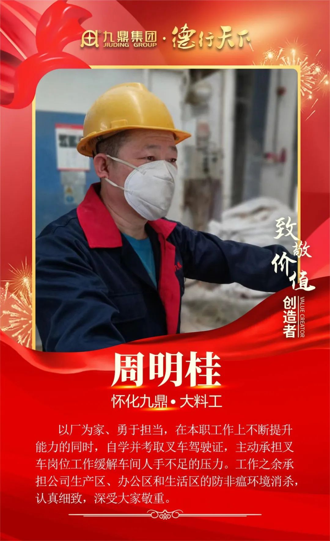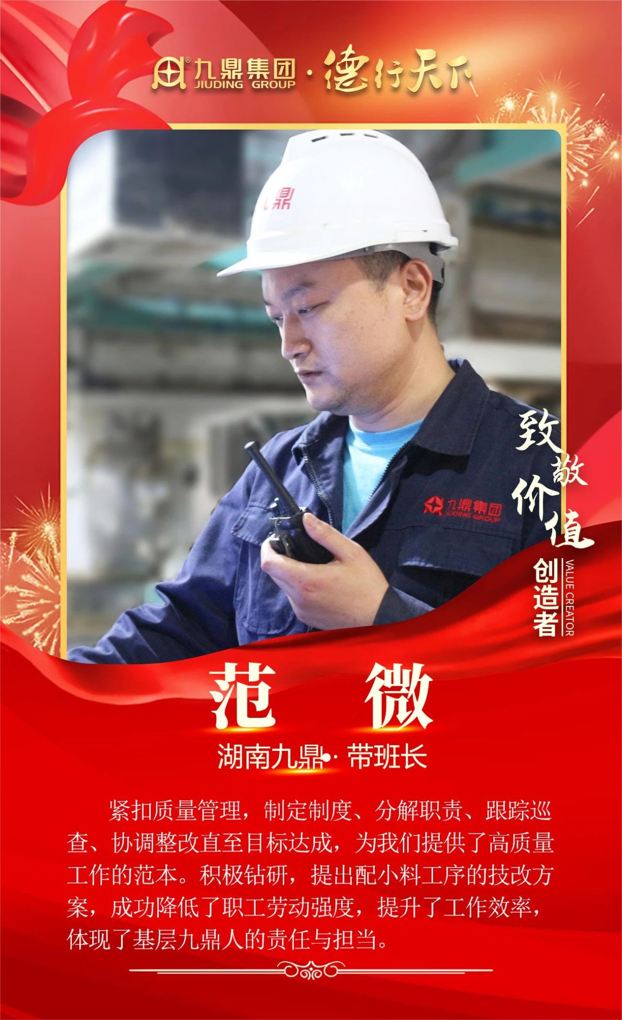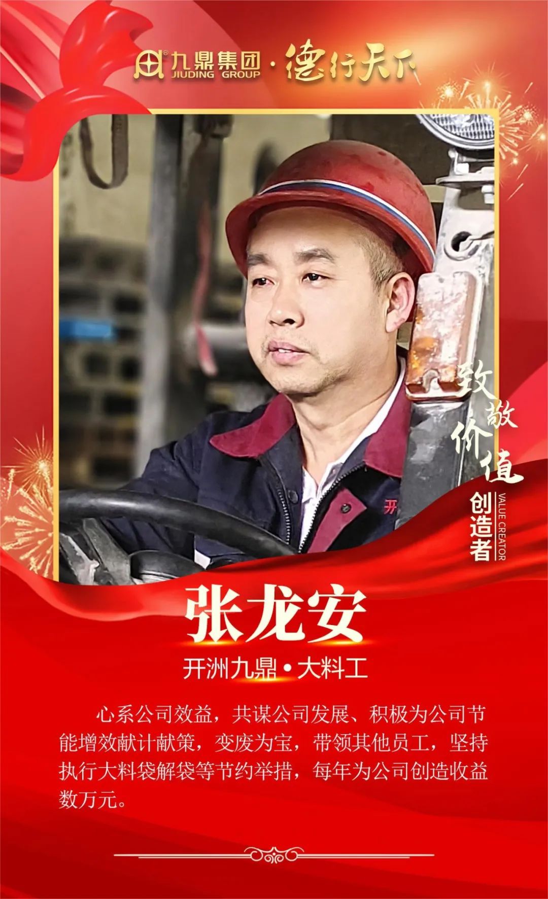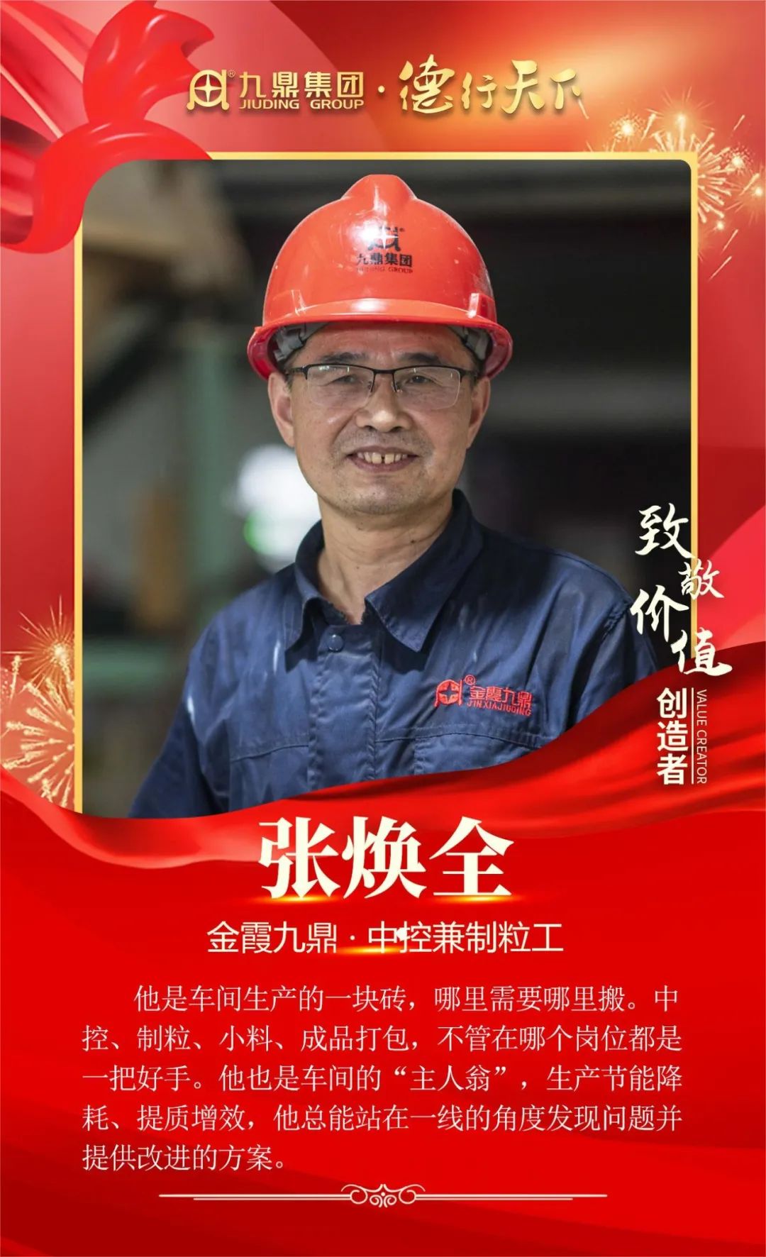 他們愛崗敬業、爭創一流、艱苦奮斗、勇于創新、淡泊名利、甘于奉獻,用實際行動詮釋了“創造價值、共享成功、成就自我、和諧社會”的核心價值追求。在“五一”國際勞動節到來之際,讓我們走近九鼎先進代表,感受勞動模范風采,凝聚奮進新征程、建功新時代的磅礴力量。