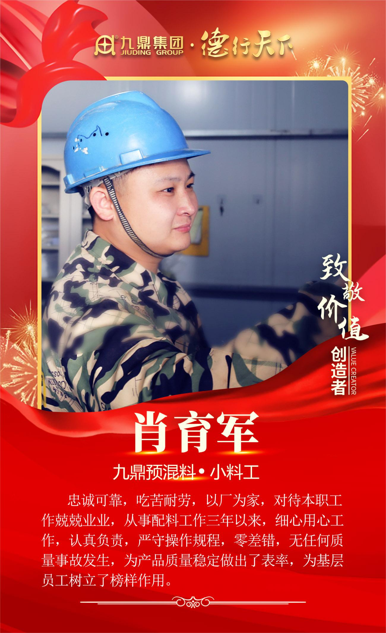 用汗水澆灌收獲,以實干篤定前行。為大力弘揚九鼎文化,鼓舞激勵廣大九鼎人學習標桿、趕超先進,集團總部組織開展了“致敬價值創造者”勞動模范評選。經嚴格篩選考察,授予楊家茂等30名員工2023年度“勞動模范”稱號。