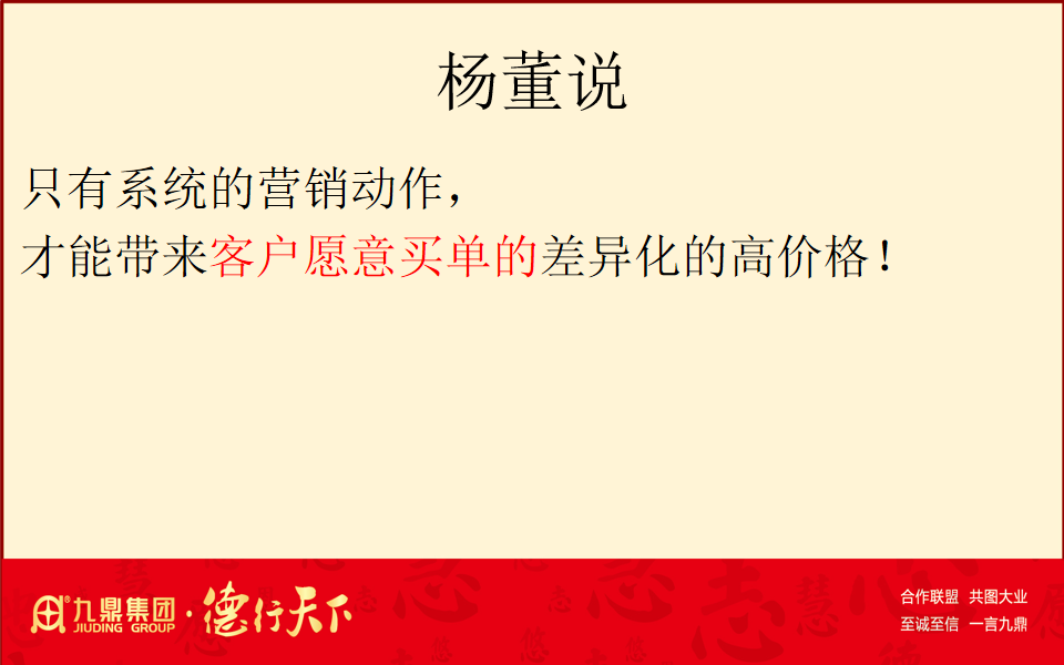 集團(tuán)副總裁尚軍先生發(fā)表熱情洋溢的致辭,分享了楊林董事長關(guān)于系統(tǒng)性營銷的重要論述:“只有系統(tǒng)的營銷動作,才能帶來客戶愿意買單的差異化的高價格!”同時,他也強(qiáng)調(diào)了“定風(fēng)波,基本功,不會錯”的經(jīng)營哲學(xué),即在復(fù)雜多變的市場環(huán)境中,企業(yè)要保持穩(wěn)定發(fā)展,必須具備扎實(shí)的基本功。