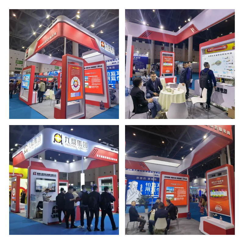 展會現場人流如織,九鼎展位熱鬧非凡,工作人員現場展示了九鼎的明星產品、生產工藝以及服務體系,并針對目前行業痛點如何讓幫助養殖戶降本增效,提升養殖效益。