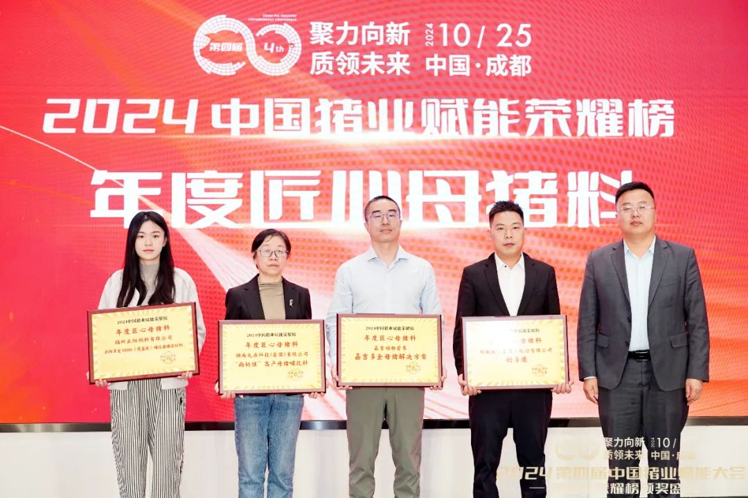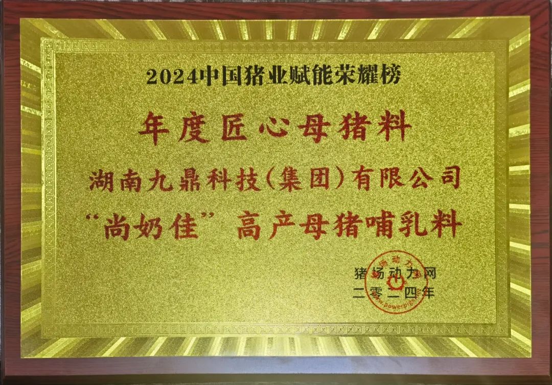 在與李曼大會同期舉行的2024中國豬業賦能大會頒獎典禮上,九鼎哺乳母豬料榮獲2024年度匠心母豬料產品獎。