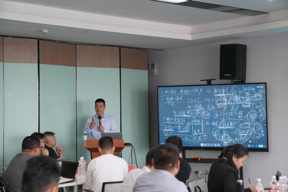 服務體系總監蘇飛老師講解“如何搭建九鼎營銷服務體系”,從搭建營銷服務體系的目的、服務的本質、了解客戶需求(低成本、運營托管、指標托管、資金需求)、營銷服務體系的組織結構、駐場服務的流程等方面進行講解。