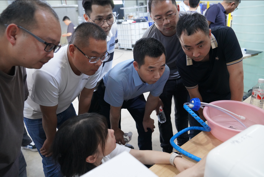 梵高彭崇廉總經理和管策老師主要介紹了梵高—次氯酸,綜合的解決方案和行業應用的案例、營銷體系、營銷模式和不同應用場景下的使用方案,并積極解答各服務老師的問題,大家對次氯酸設備非常感興趣。下午至梵高工廠參觀、安裝培訓及考核,此次梵高之行大家收獲頗深,使各服務老師回去能夠給客戶講、能夠算成本、能夠安裝,利用好梵高次氯酸設備,提升服務競爭力。