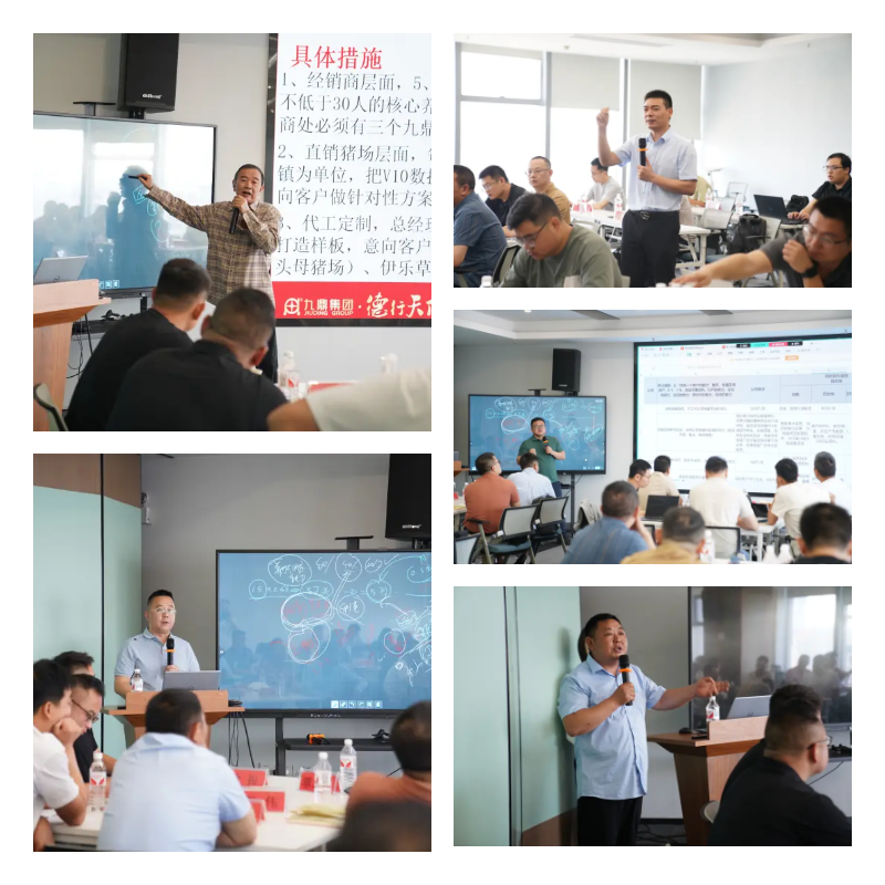 面對行業存量競爭加劇與養殖戶需求升級的雙重挑戰,九鼎集團全面推進戰略轉型:從“飼料供應商”到“全程服務方案引領者”轉變。此次培訓聚焦三大目標:梯隊建設、業績突破、經驗共享,旨在推動業務骨干從“單純賣產品”向“飼料+喂養指導+養殖管理”的全程服務模式轉型。訓戰首日,集團監事張國球老師通過企業文化宣貫,筑牢九鼎31年的匠心根基;外聘專家李淼博士與產品中心總經理羅佳捷博士聯袂解析“料、喂、養”全流程轉型路徑,財務中心總經理廖永強深度剖析“增量驅動利潤”的核心邏輯,為參訓骨干拓寬經營視野。