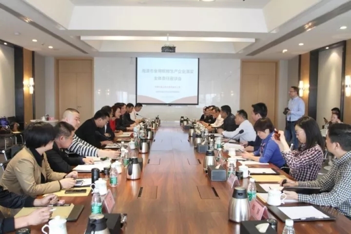 2017年11月3日,由湘潭市食品安全委員會辦公室主持、湘潭市食品藥品監(jiān)督管理局組織召開的“湘潭市食用檳榔生產企業(yè)落實主體責任座談會”在湖南賓之郎食品科技有限公司大會議室順利召開。湘潭市經信委、湘潭市發(fā)改委、湘潭市衛(wèi)計委、湘潭市科技局、湘潭市工商局、湖南省檳榔食品行業(yè)協(xié)會以及賓之郎、胖哥、小龍王、皇爺、伍子醉、和暢等14家大中型檳榔食品企業(yè)負責人或代表出席并參加會議。